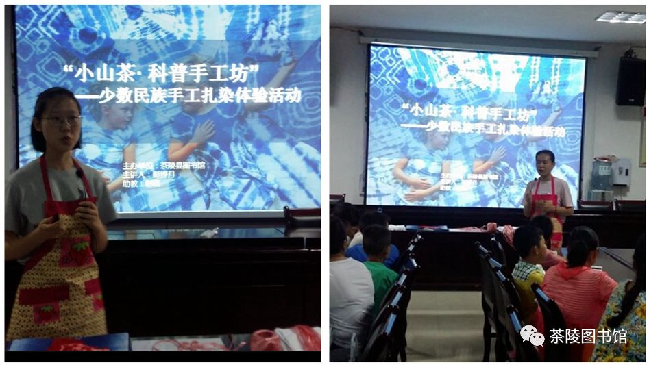 “染出自己的世界 染出绚烂的色彩”7月18日上午由茶陵县图书馆新推出的“小山茶·科普手工坊”——少数名族手工扎染体验活动开启了第一堂课!