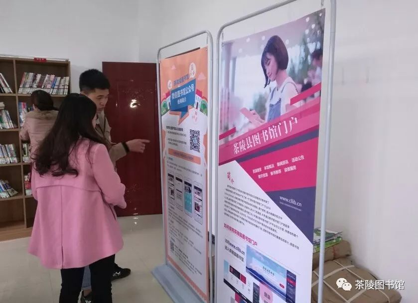 Happy 12月25日---12月28日,茶陵县图书馆在高陇分馆、高径分馆、思聪分馆、清水分馆、沿河分馆、枣市分馆开展了六场数字资源使用推广宣传活动。 我们的工作人员正在为读者介绍茶陵县图书馆门户网,包括访问网址、本馆概况、读者服务、数字资源搜索、新书推荐、活动资讯、及其他服务。 扫码关注茶图微信公众号可获取图书馆最新消息以及各类活动,账号绑定后能及时查询图书归还日期,同时还可以续借延长归还日期。 茶陵红色文化特色库包括茶陵红色人物、红色文献、红色景点、红色视频,有效的突出“特色资源”这一理念。 下载移动图书馆客户端随时随地看图书、报纸、期刊及视频。 在本次数字资源使用推广宣传活动中发放数字资源宣传手册583份,296人关注茶图微信公众平台,472人浏览茶陵县图书馆门户网及茶陵红色文化特色库,124人下载手机移动图书馆。 没有参与活动的读者快来加入我们吧: 茶陵县图书馆门户网:http://www.cllib.cn/ 茶陵县红色文化数据库:http://clxhswh.lib.libsou.com/ 手机移动图书馆扫码下载: HELLO 2018